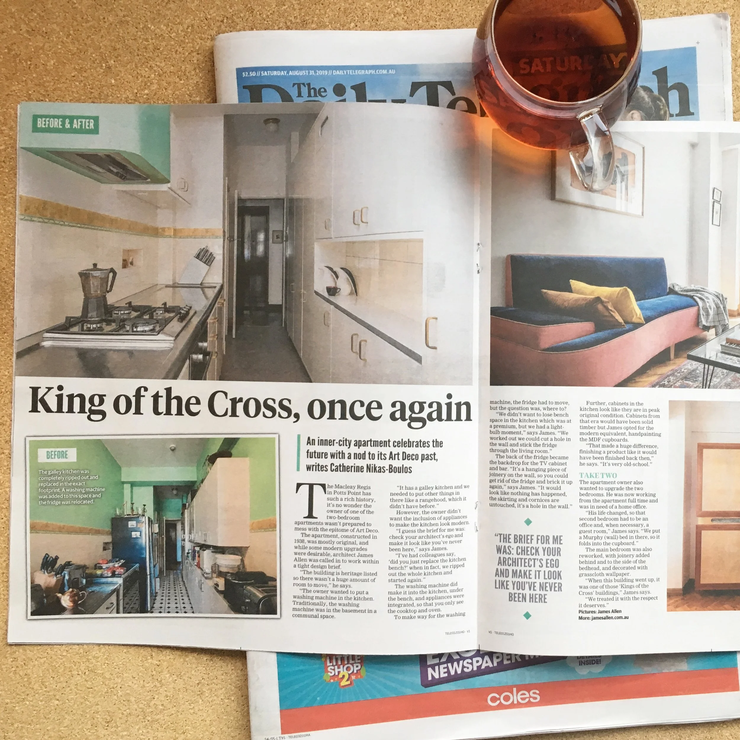 King of the Cross Renovation of the art deco Potts Point Apartment featured in Home lift out of Saturday’s Daily Telegraph. View fullsize View fullsize Back to Blog Publications, Printed PublicationsJames AllenSeptember 3, 2019 Facebook0 Twitter LinkedIn0 Reddit Tumblr Pinterest0 0 Likes